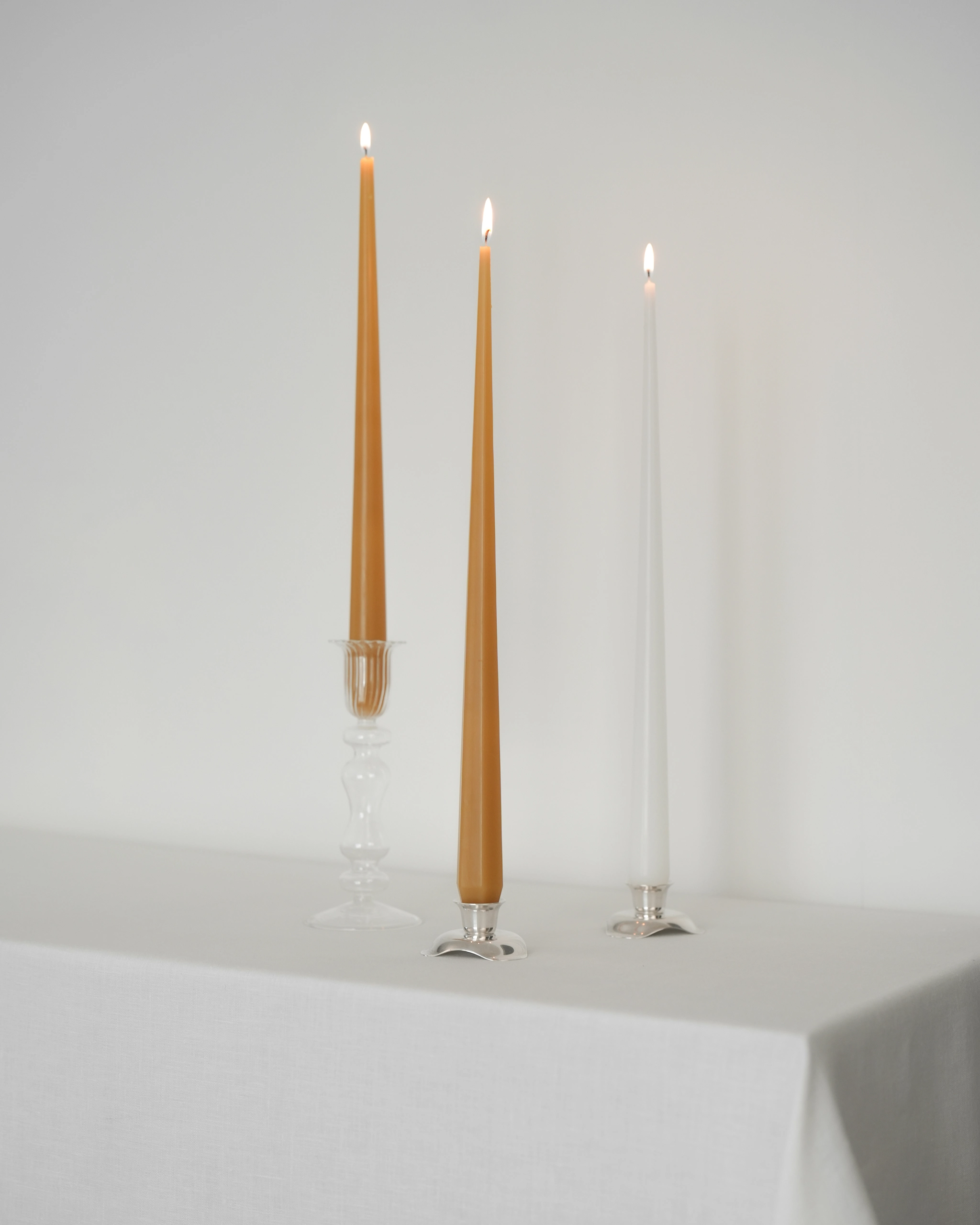 Классические свечи конической формы с гранями — стройные и элегантные. Утонченные линии и высота свечей делают их по-настоящему торжественными и шикарными. Ровные выверенные грани задают особый ритм, выглядят оригинально, но все еще сдержано и лаконично.